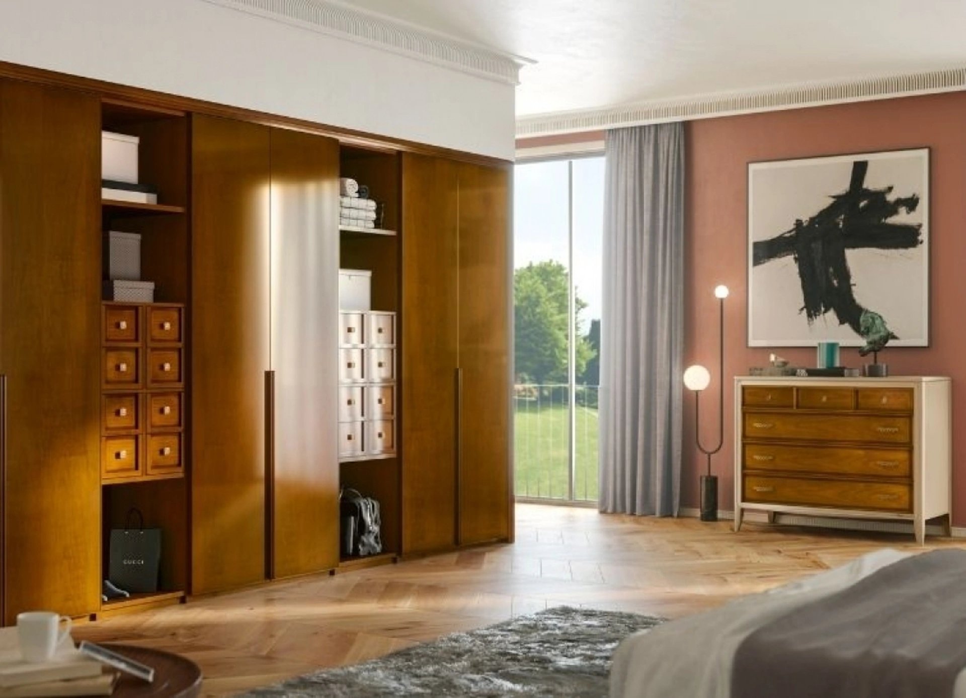 Per arredare ottimamente una stanza pratica e sofisticata, prediligi le più belle soluzioni dei migliori produttori, letti, armadi e comò di elevata qualità. Contattaci e scopri di più sulla nostra linea di Arredamento Casa: avrai la possibilità di completare la zona del riposo avendo a disposizione una ampia varietà di contenitori design, come l'armadio in legno in foto. Gli Armadi a muro con ante battenti sono elementi immancabili in camera, per renderla ben arredata, pratica e completa di tutto.
