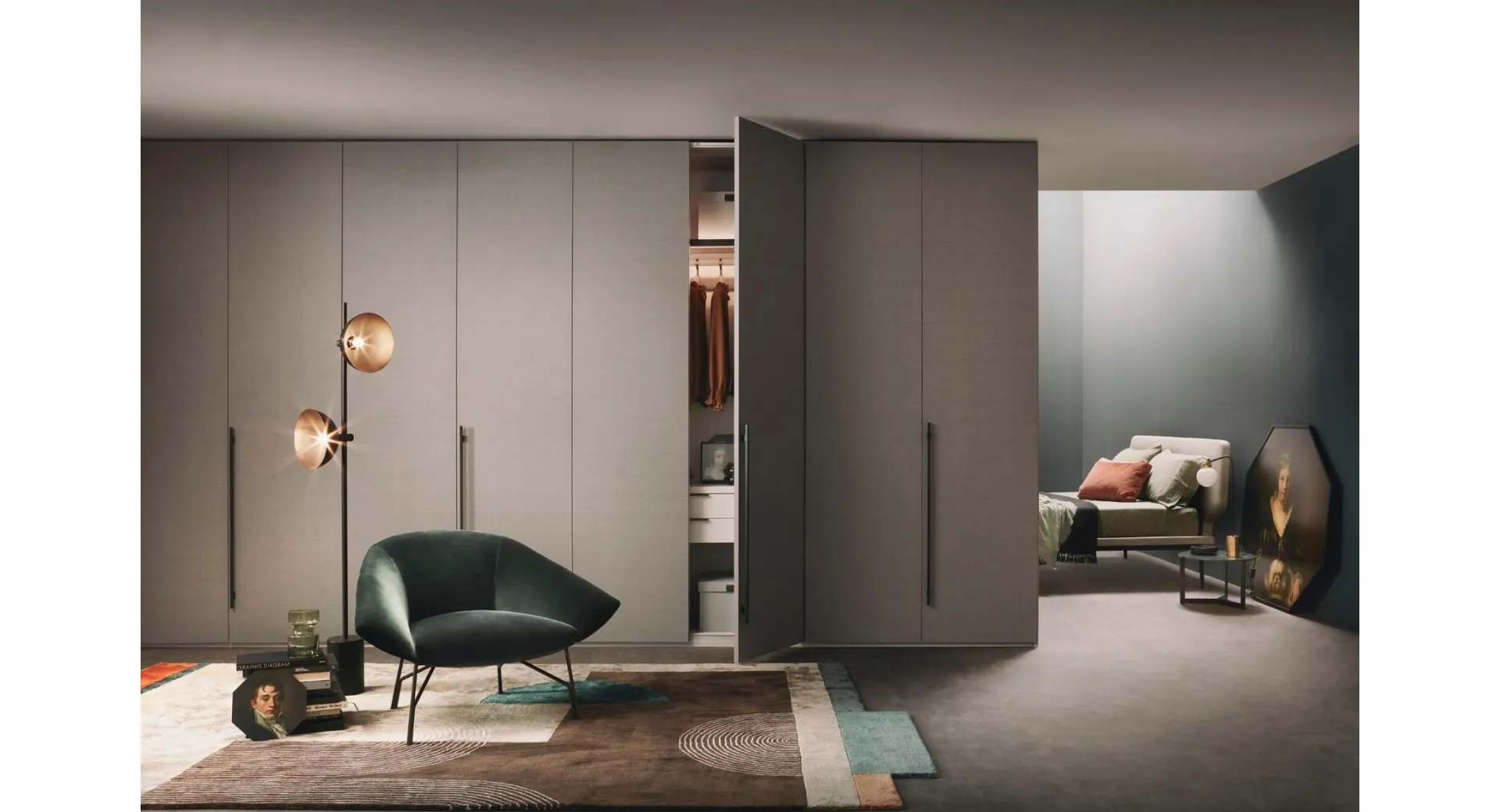 Gli Armadi e le cabine armadio con ante battenti devono allestire la zona notte assicurandoti una perfetta organizzazione degli spazi e un'esclusiva ricerca stilistica. Contattaci per informazioni e preventivi e potrai ultimare la zona del riposo che hai sempre desiderato grazie ad una diversificata gamma di mobili contenitori moderni come questo armadio in laccato opaco nella fotografia. La zona del riposo è dedicata al relax, deve dunque risultare ben arredata e completa di mobili e complementi capaci di creare un'atmosfera sempre distensiva. Per ultimare ottimamente il progetto d'arredo, scegli le nostre proposte di Arredamento Casa delle migliori marche, letti, armadi e comodini diversi per classe, dimensione e finitura.
