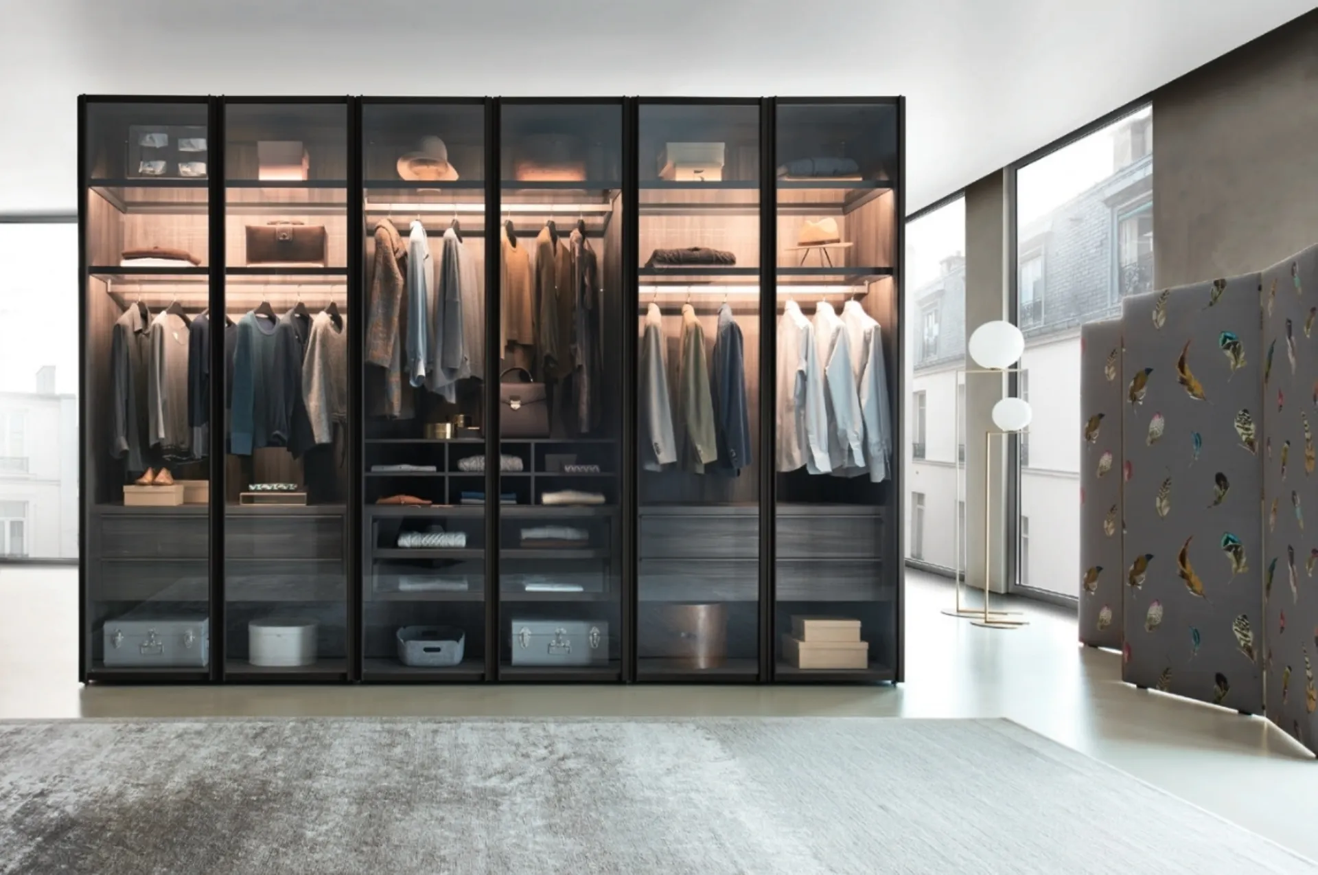 Gli Armadi e le cabine armadio con ante battenti devono allestire la zona notte garantendoti una perfetta ottimizzazione degli spazi e un'esclusiva ricerca stilistica. Per ultimare perfettamente il progetto d'arredo, scegli le nostre proposte di Arredamento Casa dei migliori produttori, letti, armadi e comodini differenti per stile, dimensione e materiale. Contattaci per informazioni e preventivi e potrai ultimare la camera da letto che hai sempre voluto grazie ad una ampia offerta di contenitori moderni come quest'armadiatura in vetro nella fotografia. La camera da letto è dedicata al riposo, deve perciò risultare ammobiliata al meglio e completa di mobili e oggetti accessori capaci di ricreare un'atmosfera sempre distensiva.