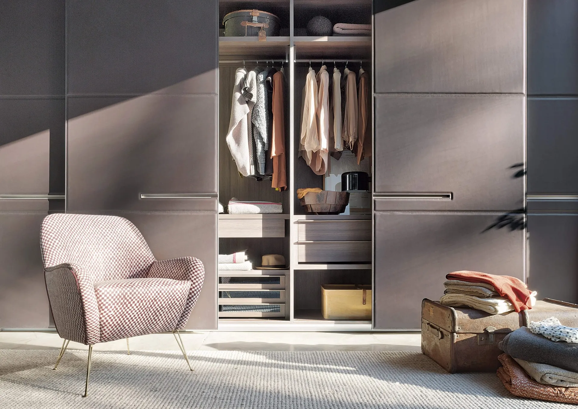 Nella nostra collezione di Armadi su misura moderni con ante scorrevoli potrai trovare anche il modello mostrato in foto, perfetto per chi cerca funzionalità e stile. Contattaci e ottieni informazioni su un ricco catalogo di Arredamento Casa per allestire la camera da letto utilizzando mobili contenitori in materico di elevata qualità. Armadio con anta scorrevole Warm di Lema: compila il form per info e preventivi e progetta la tua casa come l'avevi sognata. Per completare il concept d'arredo in una zona notte funzionale ed esteticamente gradevole, abbiamo scelto per te le più esclusive e attuali soluzioni Lema, diverse per eleganza, grandezza, finitura e accessori.