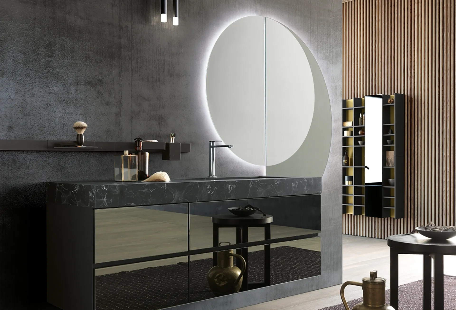 Con i modelli che presentiamo ti garantirai arredi ben fatti e alla moda anche per il bagno, che va progettato con attenzione, con funzionalità e stile. Archeda progetta progetti per l’Arredo Bagno design con mobili bagno sospesi che coniugano design unico e funzionalità, come questo interno vuole. In negozio potrai visionare in prima persona le più originali composizioni arredative del noto e conosciuto brand: ti accoglieremo per arredare insieme il tuo bagno. Materie prime di qualità e una ricca gamma di colori garantiscono una personalizzazione dettagliata e materiali pregiati resistenti a diverse sostanze. Bello e utile in ogni stanza da bagno, un modello in vetro design come quello nell'immagine risolverà le tue problematiche abitative di ogni tipo.