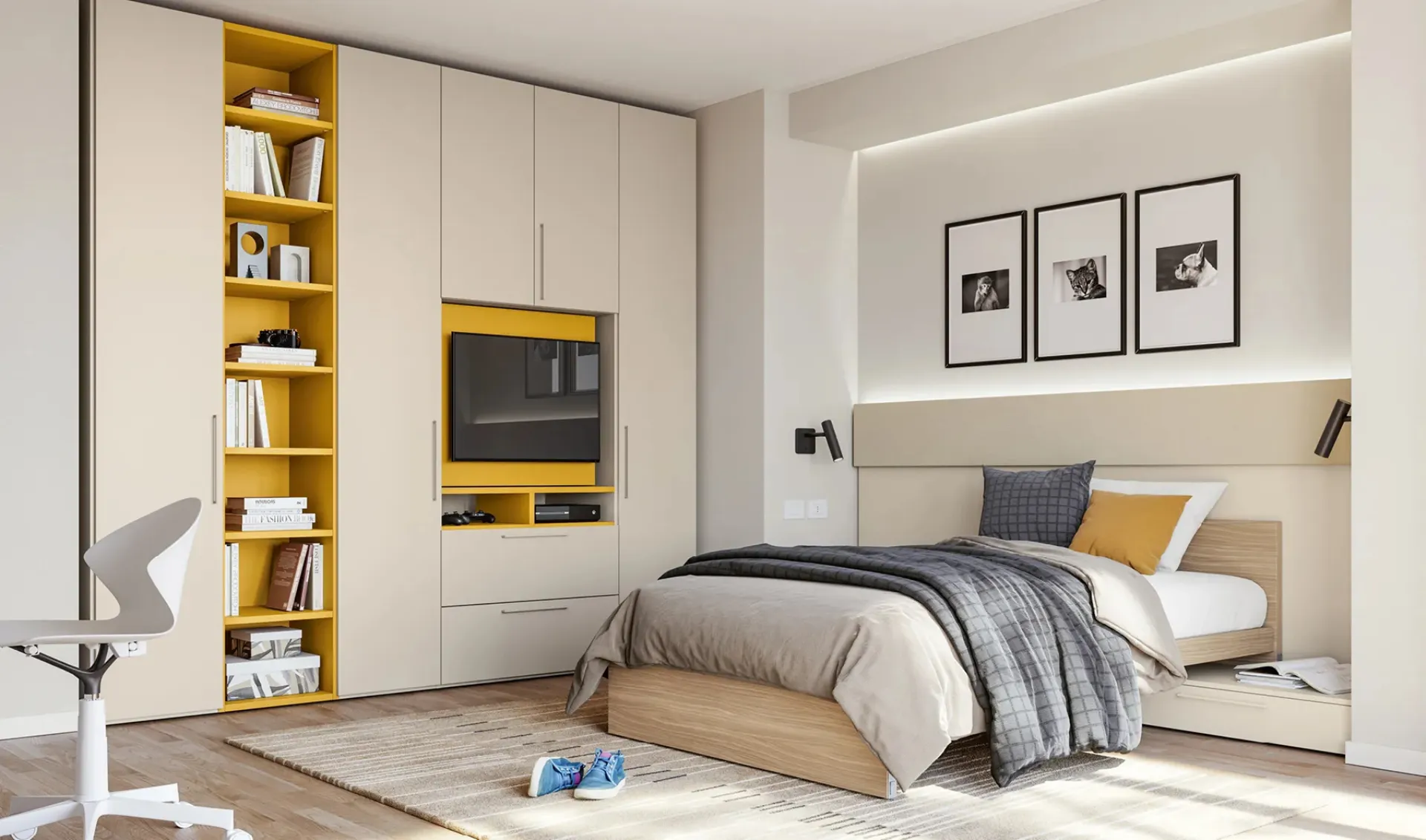 Questa proposta in melaminico ultima ottimamente le doti di funzionalità e l'estetica della camaretta, poiché è capace di congiungere funzionalità ed ergonomia. Nella progettazione della stanza dei bambini affidati a noi: nel nostro punto vendita proponiamo tutte le più belle composizioni arredative moderne per la loro camera. Doimo Cityline offre un ricco catalogo di accessori da abbinare su misura: troverai letto, armadio, tavolo da lavoro, sedie e librerie. Porta valore estetico e cromie vivaci nella stanza dedicata ai più piccoli con questa proposta, una delle Camerette componibili per ragazzi di Doimo Cityline. Se cerchi idee creative per arredare ottimamente la stanza dei tuoi bambini, ti proponiamo la Cameretta Layout 11A di Doimo Cityline con finitura in melaminico.