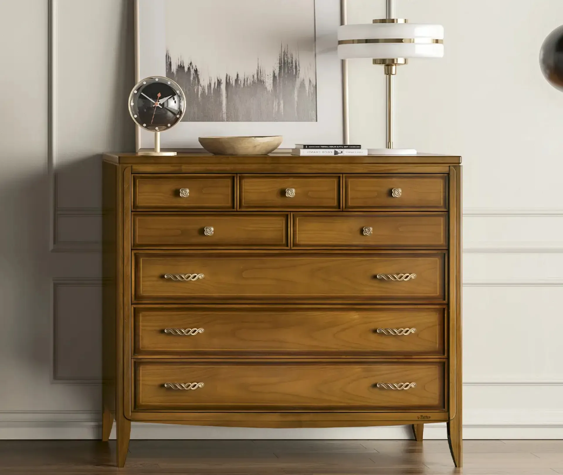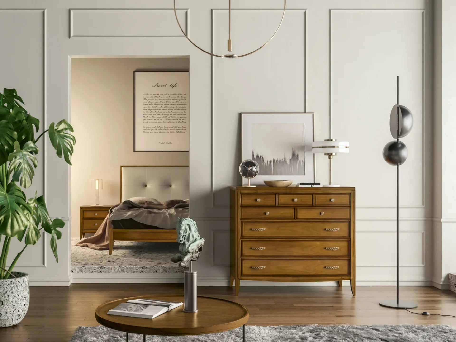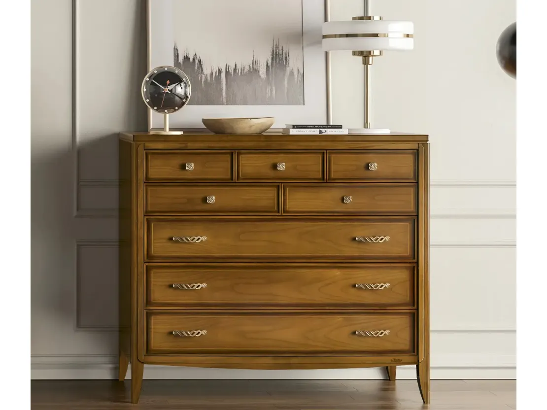 Con i nostri gruppi notte classici del marchio Le Fablier, specialista dell’Arredamento Casa per la zona notte, potrai creare la zona notte che hai sempre sognato. Comò classico Pensiero di Le Fablier: contattaci e scopri di più sulle nostre proposte d'arredo e arreda la camera come l'avevi immaginata. Ottimizza i tuoi locali scegliendo composizioni di arredi abbinati o ricrea inediti accostamenti di stile e cromie con il catalogo di mobili e complementi per la zona notte che proponiamo, come il modello in legno visibile in foto, anche realizzabili su misura per te.