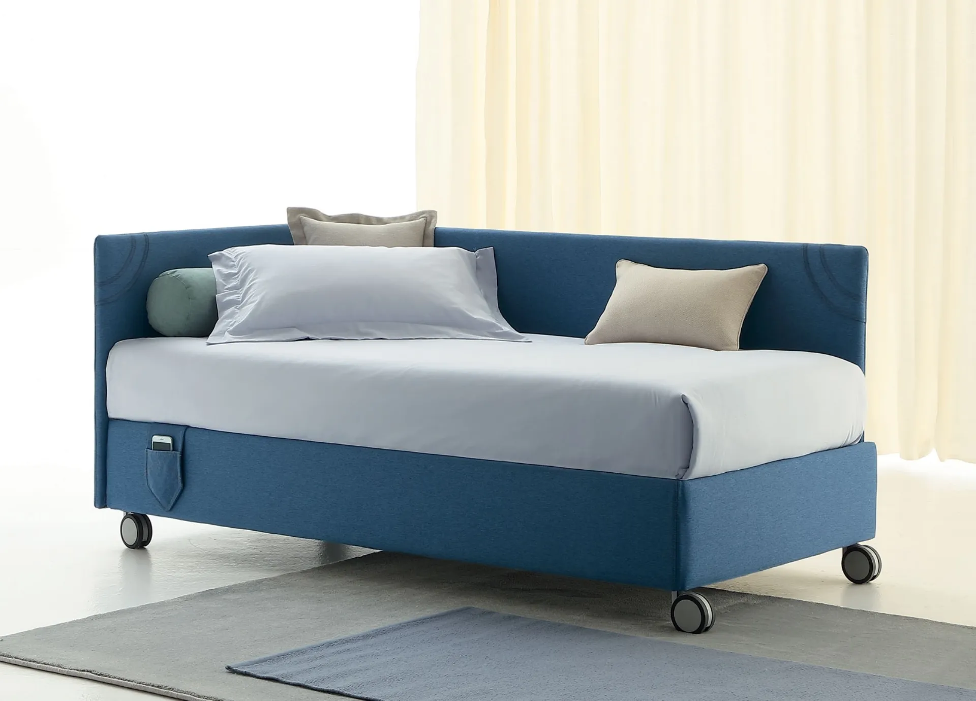 Una ricca gamma di letti moderni in tessuto ti aspetta: il marchio Oggioni propone molteplici versioni di letto, che rispondono sempre alle esigenze dei bambini. I Letti singoli con contenitore per la cameretta disponibili in negozio risolvono ogni problema di spazio e funzionalità, assicurando allo stesso tempo un design unico. Ottieni informazioni sul Daybed singolo Golf 219 Jeans Mode di Oggioni in foto: è ideale per creare alla perfezione un ambiente ideale per i bambini, bello e ben organizzato, ideale per i tuoi figli.