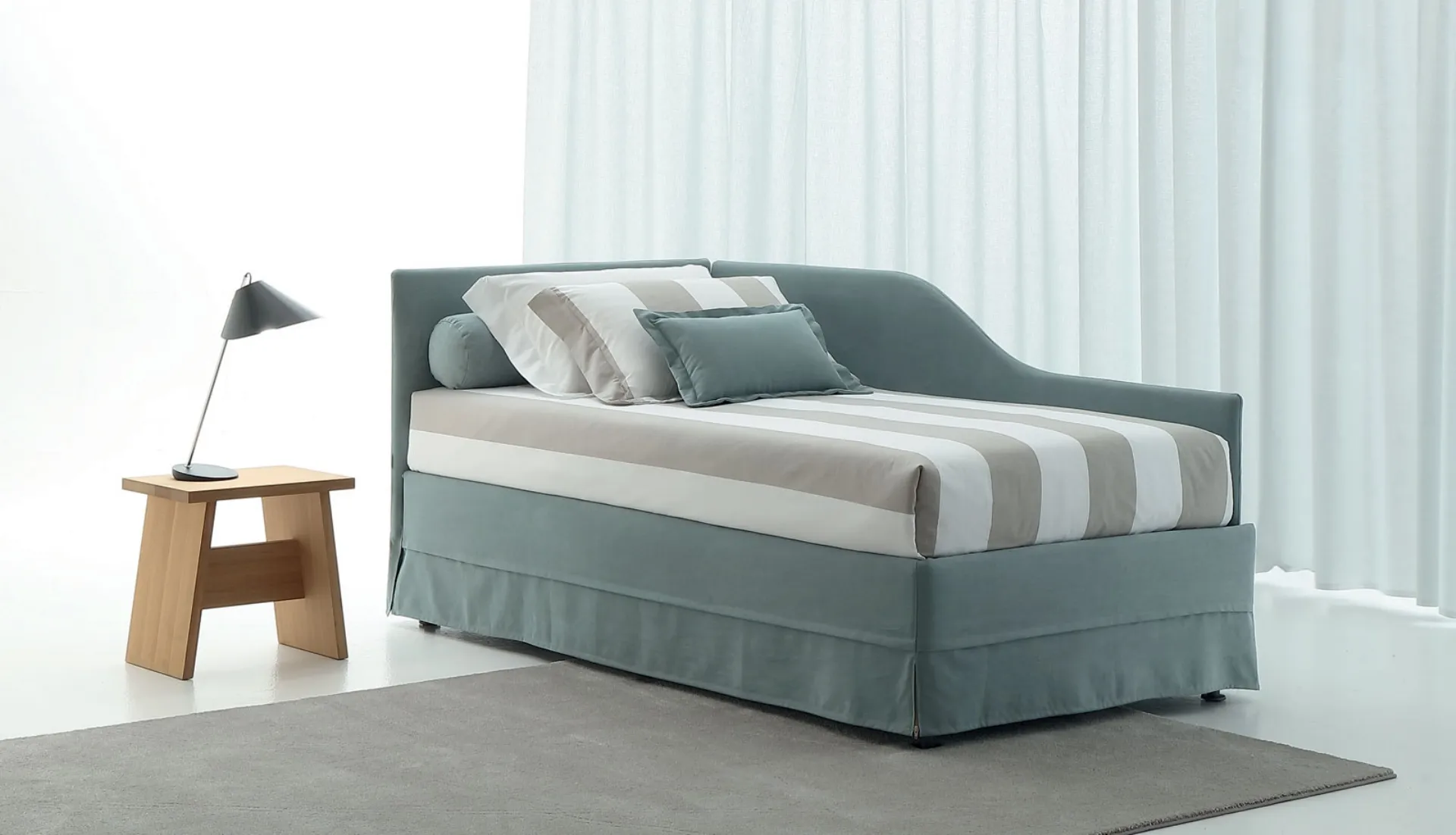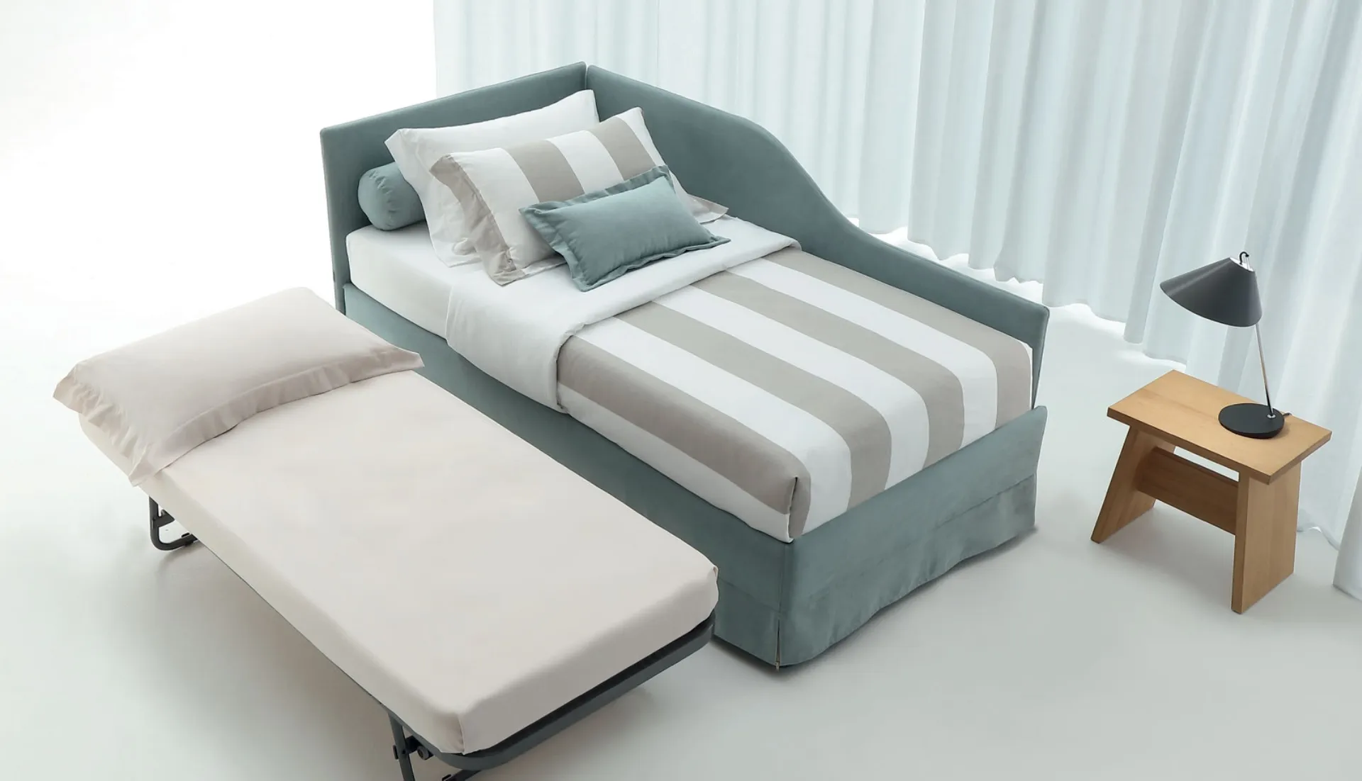 La cameretta dei ragazzini include tutti gli arredi per garantire un interno ideale per i bambini, in cui collocheremo i letti moderni come questo. Una soluzione che osserva le direttive di sicurezza necessarie per arredare l'ambiente dei piccoli. Scopri di più sul modello in tessuto in foto: contattaci per qualsiasi specifica compilando il form in basso.