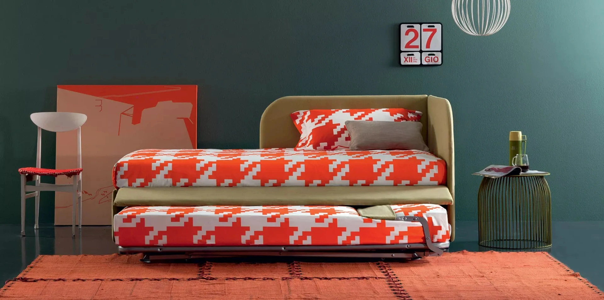 I Letti singoli con letto estraibile per la cameretta disponibili in negozio risolvono qualsiasi problema di spazio e funzionalità, assicurando contemporaneamente un design unico. Scopri di più sul Daybed singolo con letto estraibile Golf 530 di Oggioni nella fotografia: si adatta a ricreare perfettamente un ambiente accogliente, bello e ben organizzato, ideale per i tuoi figli. Un ricco catalogo di letti moderni in tessuto ti attende: il brand Oggioni propone diverse versioni di letto, che rispondono sempre alle necessità dei bimbi.