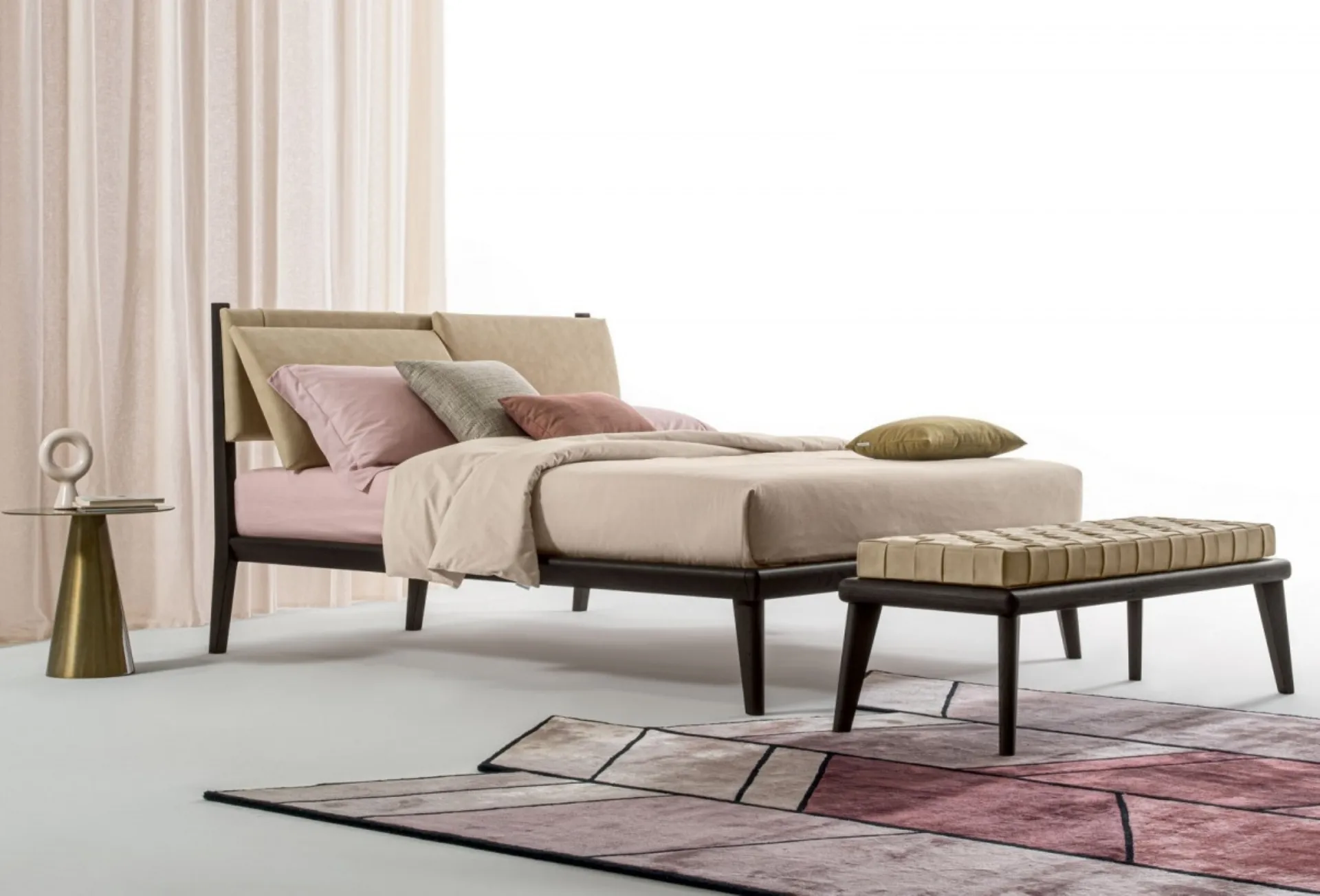 Se desideri una soluzione in tessuto, il modello mostrato in foto è connotato da materiali di qualità e forme decise, che invitano a passare un riposo tranquillo e ristoratore. Durante la scelta della giusta tipologia di letto, valuta attentamente le sue misure, le finiture, la forma e il suo stile rispetto ai restanti pezzi d'arredo. Scegli cromie e texture e realizza il tuo progetto d’arredo nella zona notte, progettandola proprio come l'avevi immaginata. Il Letto con testiera Orimento Slim di Oggioni ricrea uno spazio familiare e confortevole in ogni zona notte, garantendoti il sonno più profondo e uno stile unico.