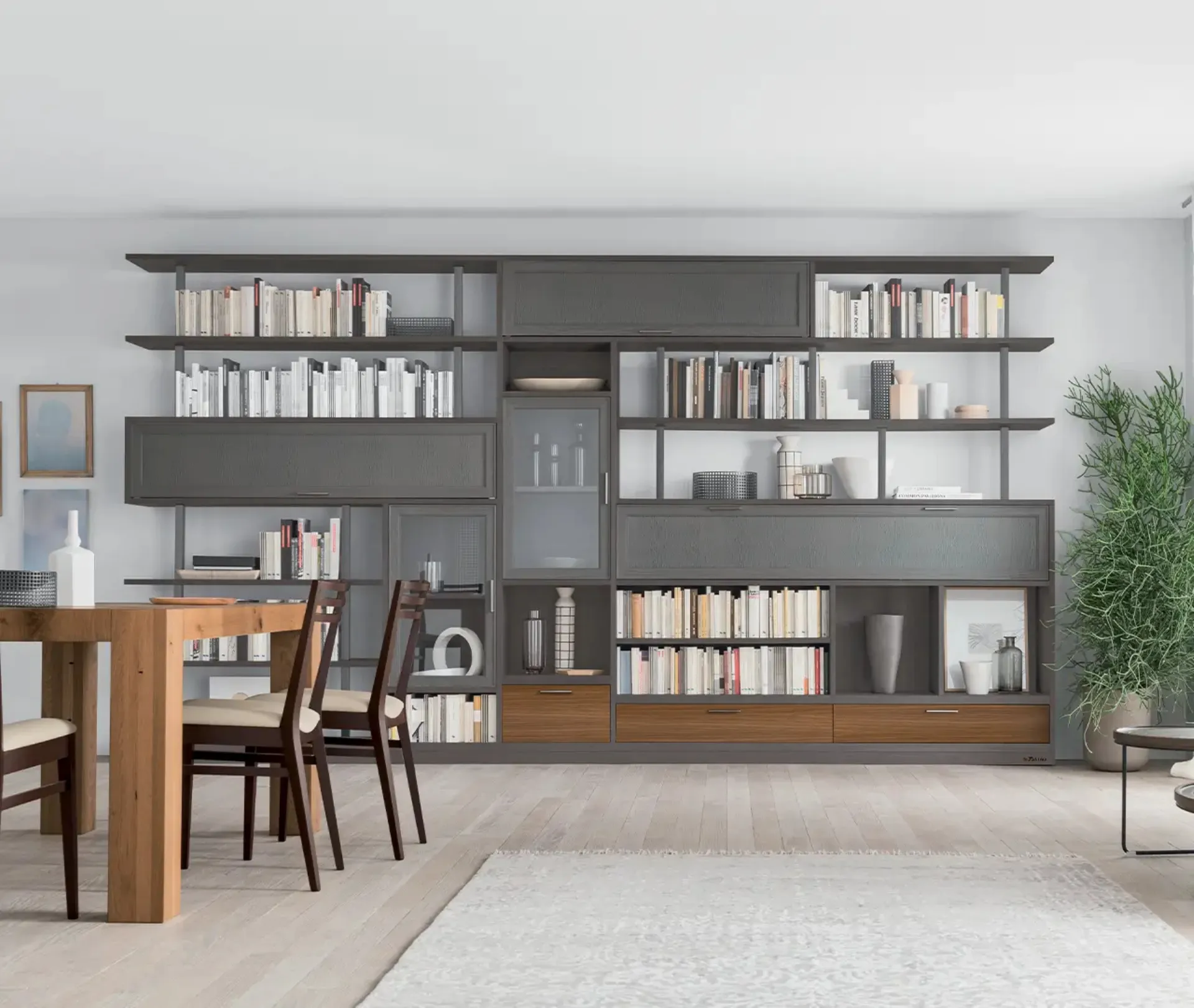 Grazie alla Libreria a muro Melograno composizione 92 di Le Fablier potrai modificare il mood della tua casa, ottimizzando ogni spazio con grande valore estetico. Scopri in negozio la nostra serie di Librerie a muro dei migliori brand di Arredamento Casa. Da noi potrai trovare diversi modelli di Librerie a muro moderne per la zona giorno, come il modello in legno laccato in foto. Con ilmobile soggiorno in legno laccato qui presente potrai creare un'atmosfera unica, connotata dalle forme decise di questo modello.