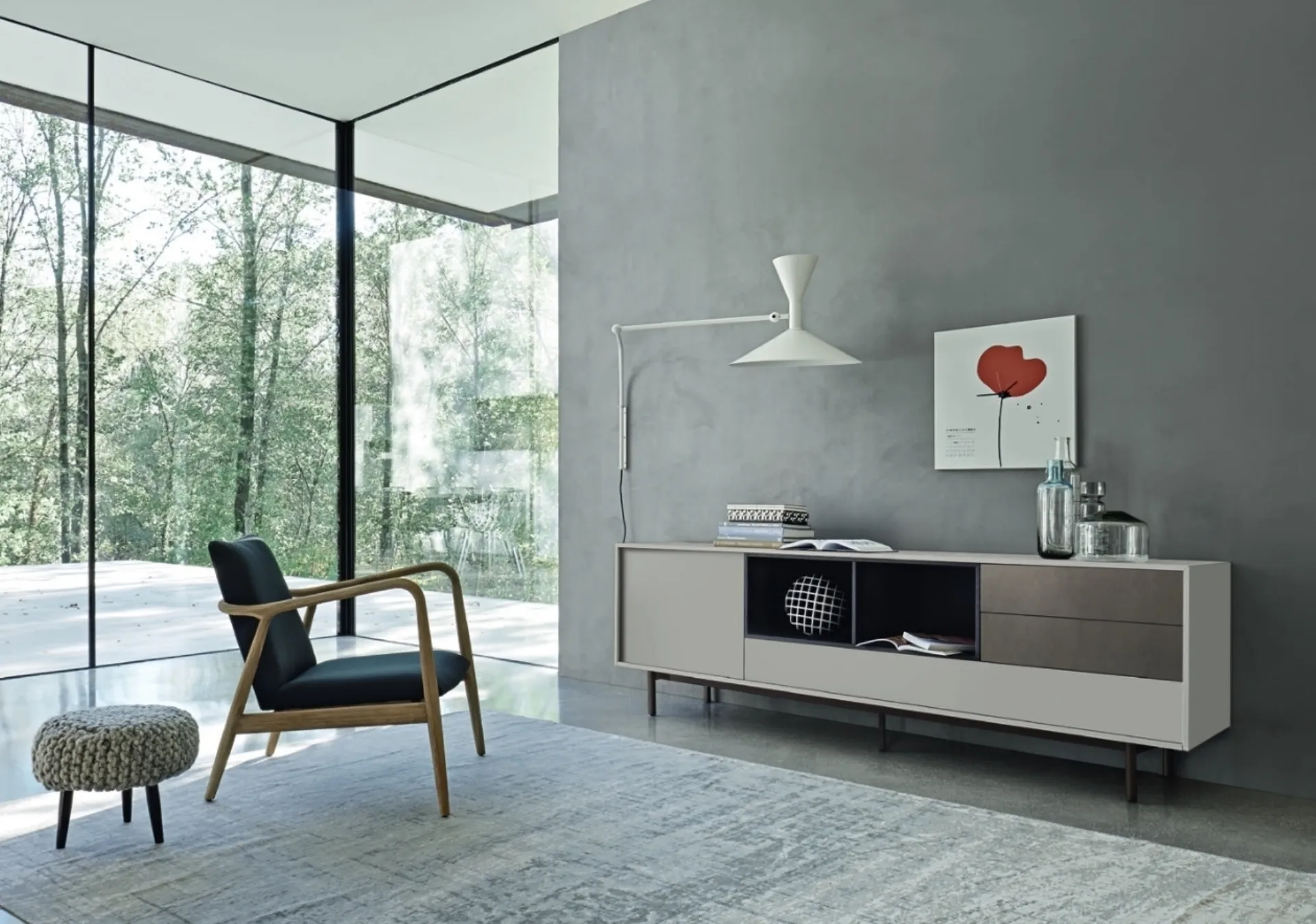Anche in un soggiorno non generoso, questi mobili soggiorno sono in grado di risolvere varie esigenze abitative assicurando varie possibilità di caratterizzazione su misura. Se quello che stai cercando è un modello di mobile soggiorno salvaspazio, scopri nel nostro punto vendita una ricca gamma di Arredamento Casa dei migliori produttori e contattaci per info e preventivi. La Madia Lampo Open con riquadro 40 di Sangiacomo in foto in laccato opaco risolve le più particolari esigenze di spazio e stile, arredando la zona giorno con praticità e un design unico. Le Madie moderne, tra cui il modello visibile in foto, arredano il soggiorno o la sala da pranzo grazie a design unico e grandi doti di contenitività.