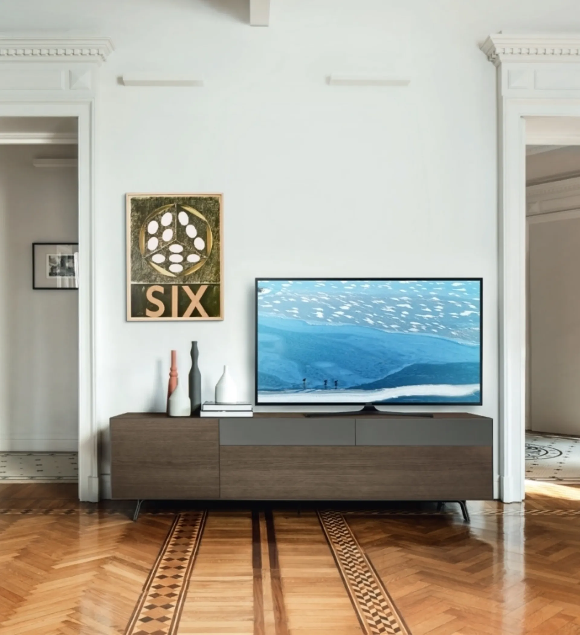 In una ricca serie di Mobili Porta Tv moderni prodotti da Sangiacomo, assume particolare rilievo il modello in legno presente in foto, mix di funzionalità e stile. I Mobili Porta Tv sono arredi per il soggiorno destinati a differenti scopi: sono alleati irrinunciabili per impreziosire e organizzare al meglio lo spazio, rendendolo vivibile. Per esporre la TV e sistemare la tua oggettistica, un mobile porta tv in legno dai richiami moderni di Sangiacomo come questo non ti deluderà. La zona giorno deve essere un luogo di fascino, vivibile e ben arredato dunque l'acquisto di un buon modello di porta tv fa una gran differenza.