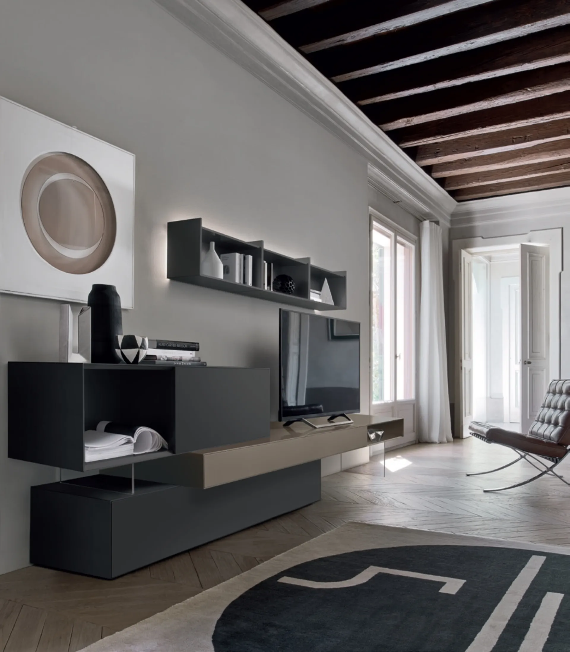 Questa parete attrezzata è una delle soluzioni del marchio e ti permetterà di progettare il living secondo le più particolari esigenze abitative. Le Pareti Attrezzate hanno assunto un posto importante nella zona giorno delle nostre case: sono arredi multifunzionali e salvaspazio sempre realizzabili su misura per te. Attraverso un gioco dinamico di accostamenti fra accessori a giorno o vani chiusi, le Pareti Attrezzate moderne arredano il living sfruttando bene ogni spazio.