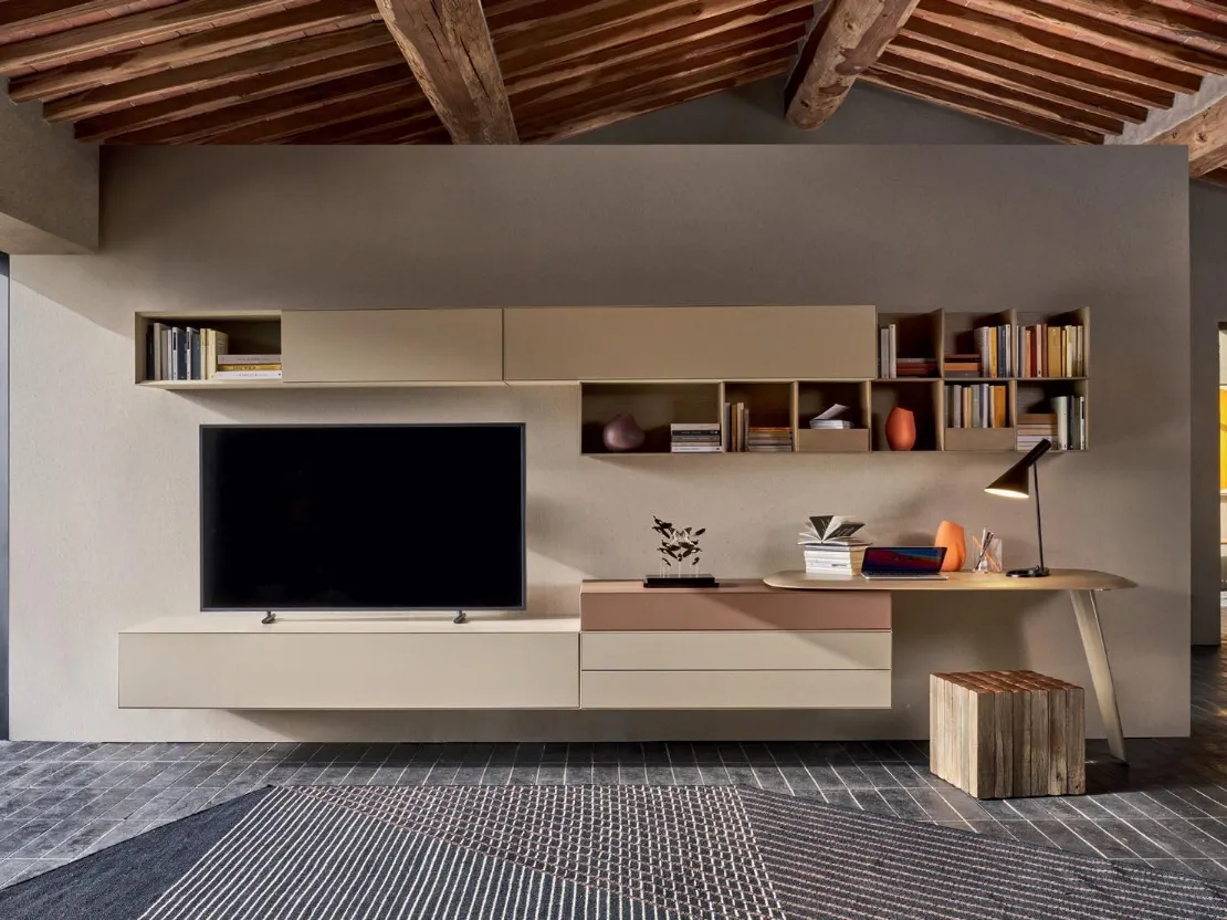 La Parete Attrezzata Domino 08 di Sangiacomo nell'immagine possiede componibilità su misura e diverse possibilità di caratterizzazione: scopri la parete attrezzata qui disponibile e contattaci per maggiori info e preventivi. A muro oppure a centro stanza per ottimizzare un open space, le più originali composizioni d’arredo sul mercato arredano il soggiorno sfruttando bene lo spazio disponibile. Dai valore ai tuoi interni con le Pareti Attrezzate moderne di Sangiacomo: nel nostro punto vendita troverai mobili ed elementi accessori di design, in materiali di prima scelta e delle migliori marche. Per soddisfare le eterogenee esigenze abitative di ciascuno, marchio mette a disposizione dei suoi clienti un ricco catalogo Pareti Attrezzate moderne estremamente funzionali e connotate da un tocco di stile.