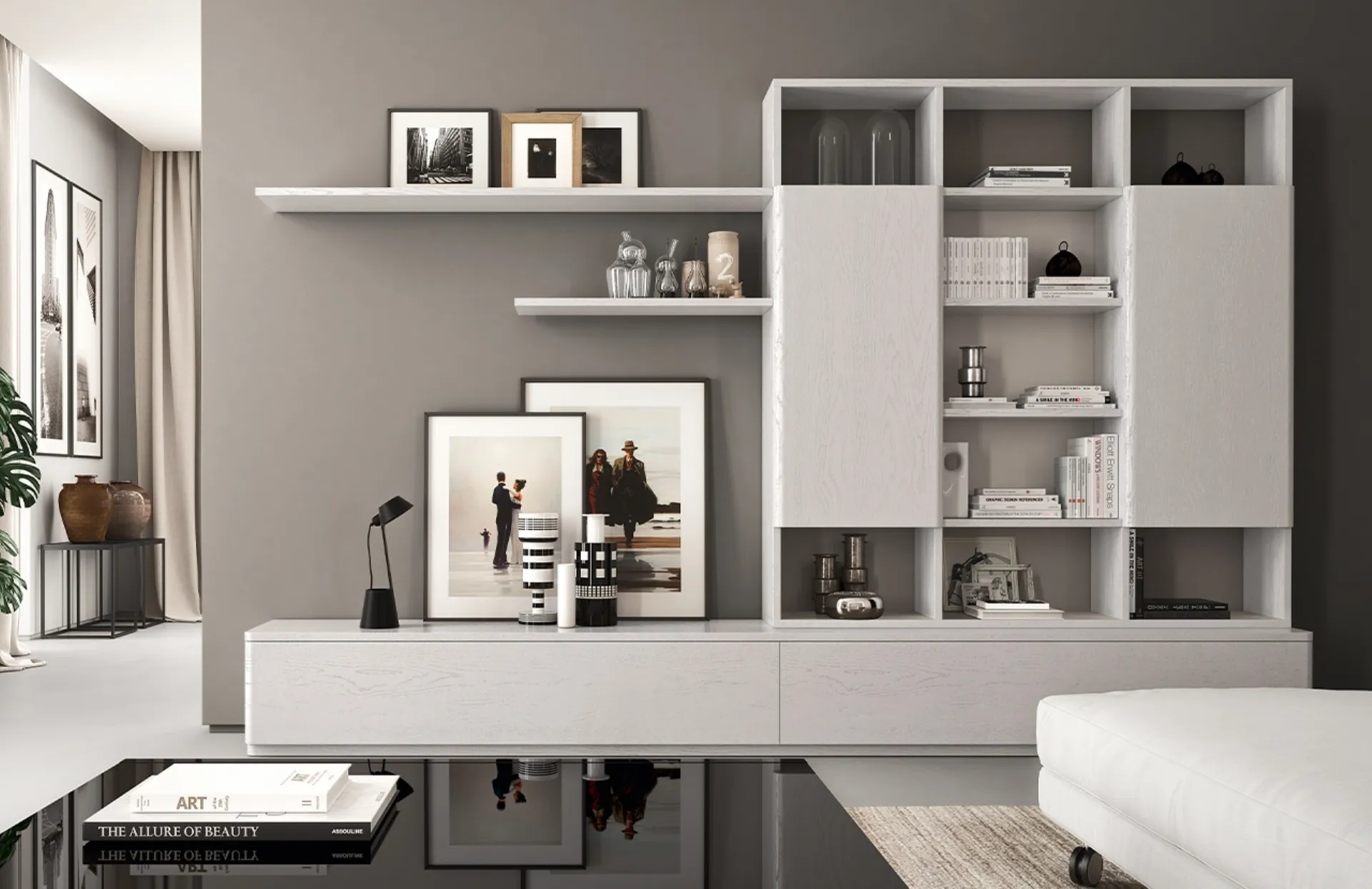Un po’ librerie, un po’ mobili contenitori ed espositori: le Pareti Attrezzate sono ideali per ottimizzare un luogo pratico e operativo. La Parete Attrezzata Fiori di Loto composizione 14 di Le Fablier nell'immagine, con finitura in laccato opaco, risolve le più particolari esigenze abitative di stile e spazio senza rinunciare alla ricerca stilistica. Anche in un soggiorno abbastanza piccolo, questo tipo di arredo riesce a organizzare al meglio gli spazi usufruendo al meglio di ogni angolo e garantendo l'alta componibilità tipica delle soluzioni classiche. Se cerchi arredi salvaspazio e realizzabili su misura, contattaci e ottieni informazioni sull'Arredamento Casa delle migliori marche.