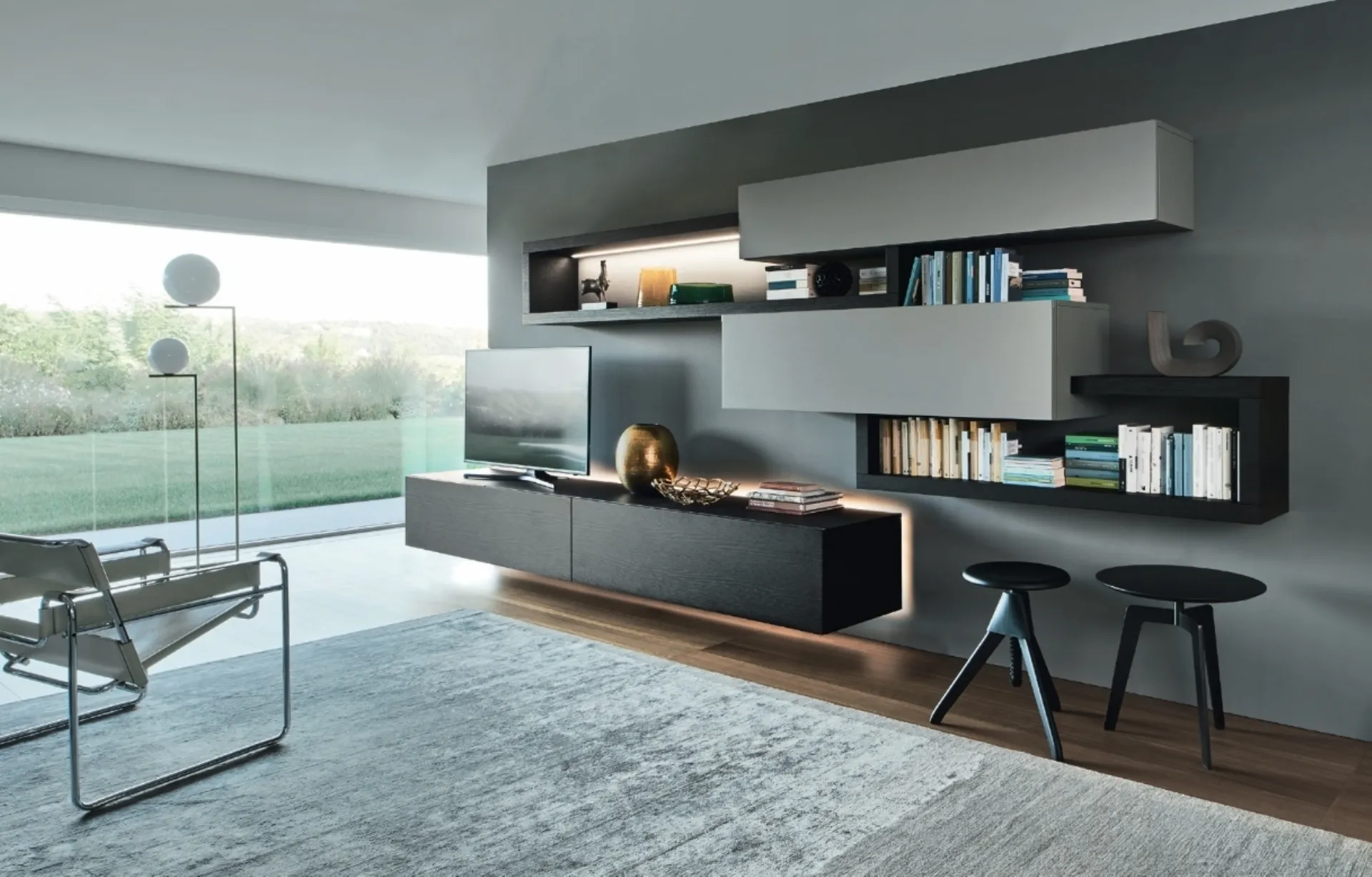 Le Pareti Attrezzate hanno conquistato un posto fondamentale nella zona giorno delle nostre case: sono arredi plurifunzionali e salvaspazio sempre realizzabili su misura. Per informazioni e preventivi sulla Parete Attrezzata Lampo L6C17 di Sangiacomo in foto contattaci! Il modello proposto è realizzato in legno, ma grazie ad una vasta gamma di finiture, cromie e conformazioni, potrà adattarsi a stili di ogni genere. Questa parete attrezzata è una delle soluzioni dell'azienda e ti consentirà di progettare il living secondo le più personali problematiche abitative.