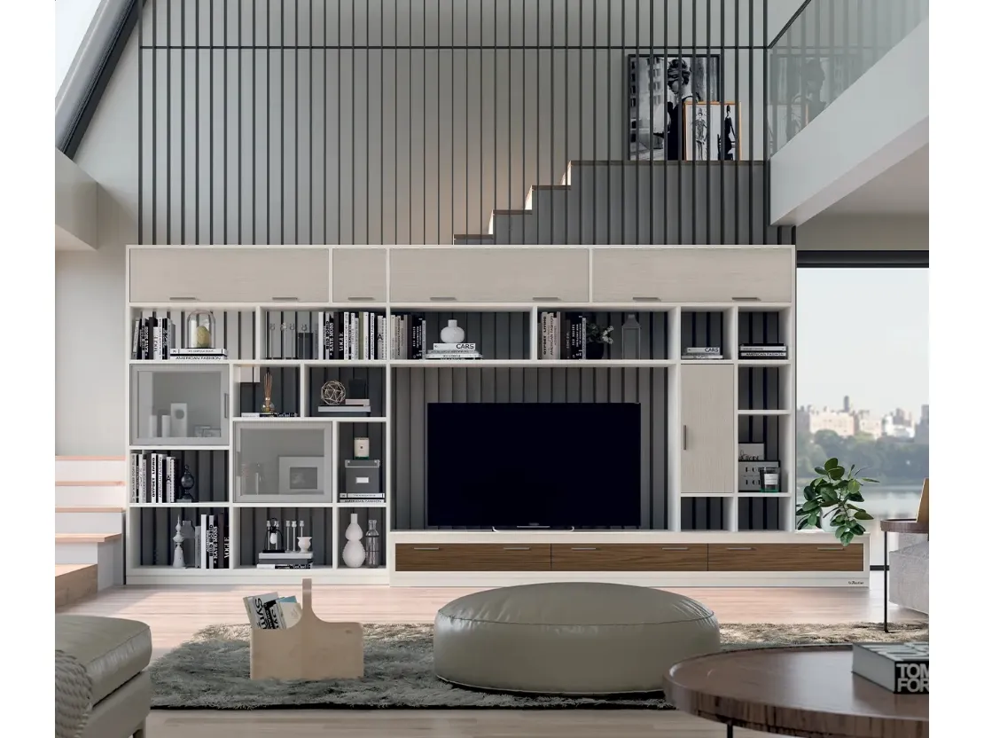 Questa parete attrezzata è una delle soluzioni del marchio e ti permetterà di arredare il living seguendo le più particolari problematiche abitative. Per informazioni e preventivi sulla Parete Attrezzata Melograno composizione 96 di Le Fablier nella fotografia contattaci! Il modello proposto è realizzato in legno, ma grazie ad una vasta gamma di finiture, cromie e forme, potrà adattarsi a stili di ogni genere. Attraverso un gioco dinamico di accostamenti fra accessori a giorno o vani chiusi, le Pareti Attrezzate moderne arredano il soggiorno usufruendo al meglio di ogni spazio.