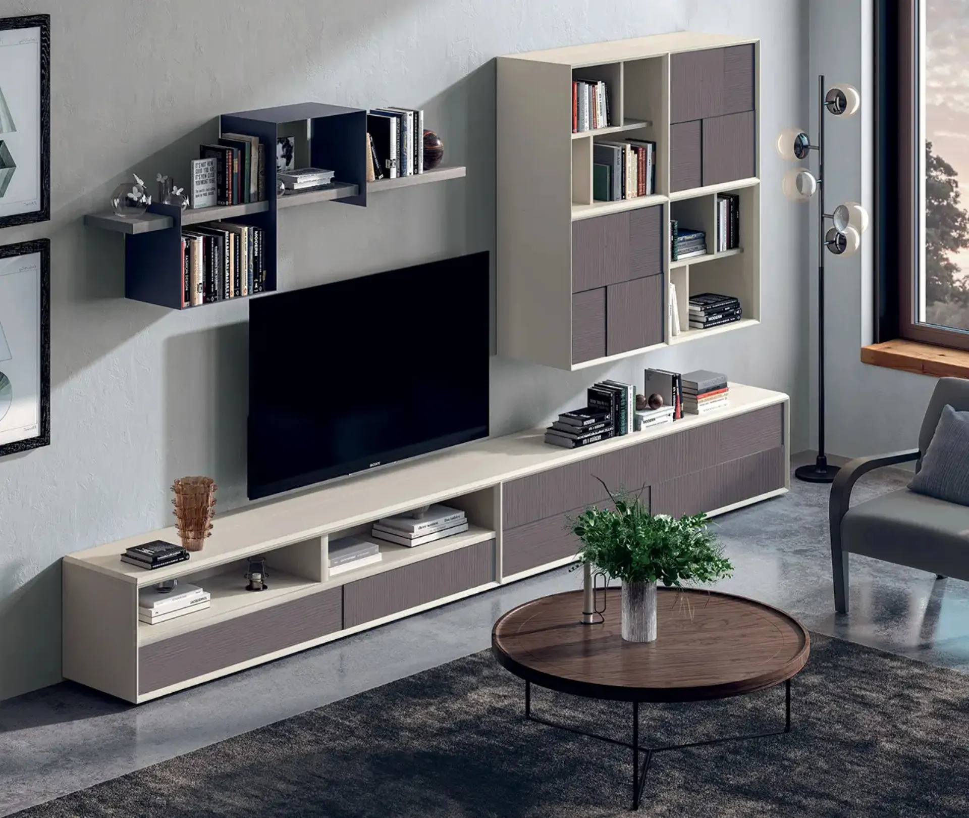 Le Pareti Attrezzate hanno assunto un posto di primo piano nella zona giorno delle nostre case: sono mobili plurifunzionali e salvaspazio sempre realizzabili su misura. Attraverso un gioco dinamico di accostamenti fra accessori a giorno o vani chiusi, le Pareti Attrezzate moderne arredano il soggiorno valorizzando ogni spazio. Per informazioni e preventivi sulla Parete Attrezzata Le Spezie composizione 14 di Le Fablier nella fotografia contattaci! Il modello proposto è realizzato in legno, ma grazie ad una grande varietà di finiture, cromie e forme, potrà adattarsi a stili di ogni genere.