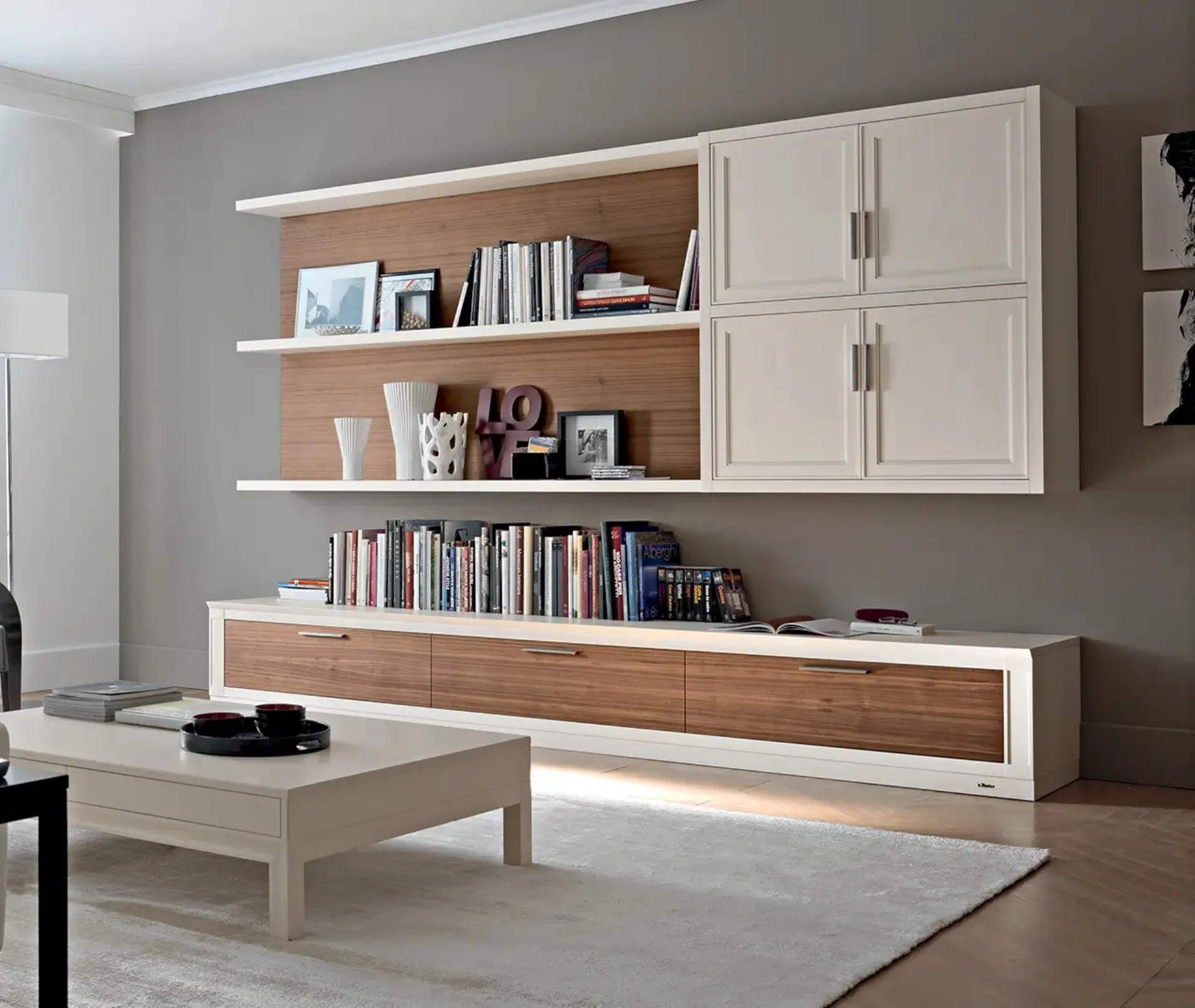 La Parete Attrezzata Melograno composizione 21 di Le Fablier in foto ha l'alta componibilità e diverse possibilità di personalizzazione: scopri la parete attrezzata qui presente e contattaci per maggiori informazioni e preventivi. Per soddisfare le eterogenee esigenze abitative di ciascuno, brand mette a disposizione dei suoi clienti una ricca gamma Pareti Attrezzate moderne estremamente funzionali e contraddistinte da un tocco di stile. A muro oppure a centro stanza per ottimizzare un open space, le più belle composizioni d’arredo in commercio arredano il living ottimizzando lo spazio disponibile.