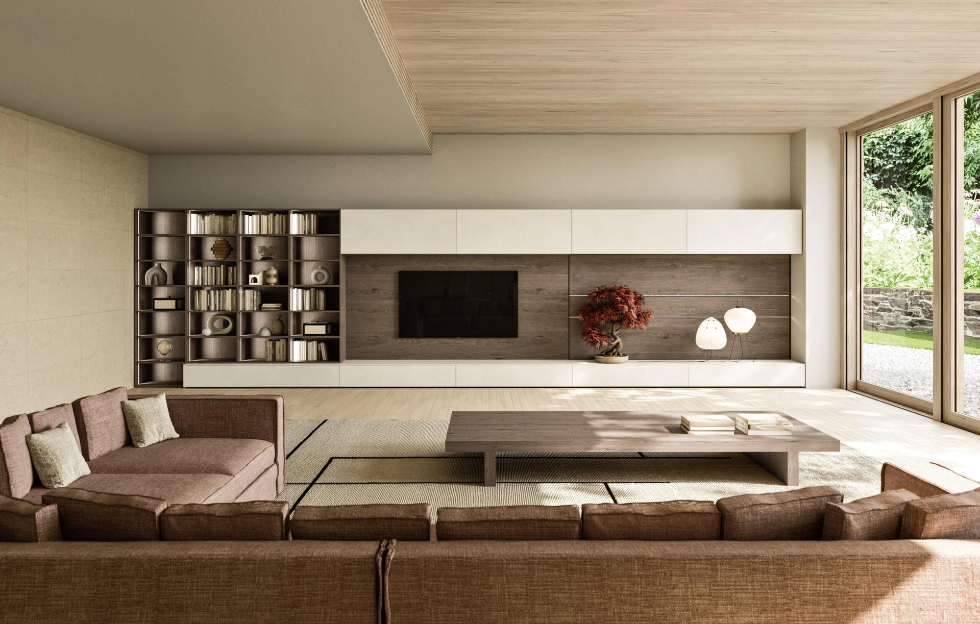 Anche in un living abbastanza piccolo, questo tipo di arredo riesce a organizzare al meglio gli spazi sfruttando bene ogni angolo e garantendo componibilità su misura tipica delle soluzioni moderne. Un po’ librerie, un po’ contenitori ed espositori: le Pareti Attrezzate sono ideali per attrezzare uno spazio pratico e operativo. Questa soluzione costituisce tutta la qualità che il brand garantisce grazie a pluriennale competenza e grande dedizione nel campo dell'arredo e del design. La Parete Attrezzata Modula Composizione 02 di Snaidero nella fotografia, realizzata in legno, risolve le più particolari problematiche abitative di spazio e stile senza rinunciare alla ricerca estetica.
